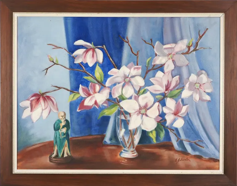 E. Johnston. A Colourful Tabletop Display. Acrylic or Oil on Board.
