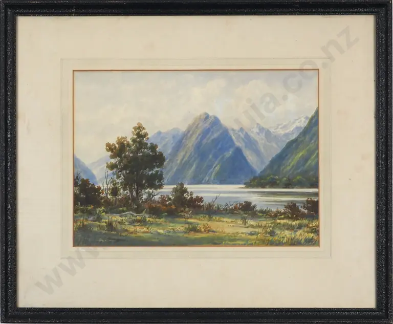 J. Malcolm. Milford Sound. Watercolour.