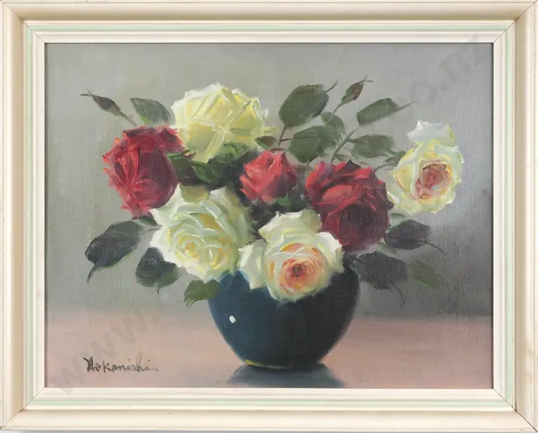 Nakanishi. Still Life - Roses. Oil on Canvas.