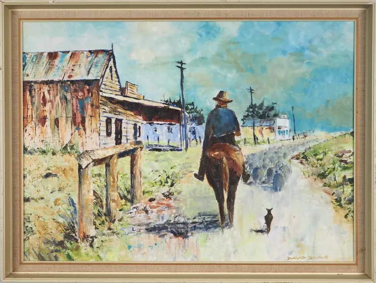 D.A. Cross. Seekers No 1 - Gold Miner, Cromwell Gorge. Oil on Board.