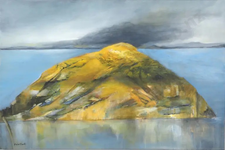 Marion Clark. Island Seascape. Oil on Canvas. w Project Jonah Photograph.