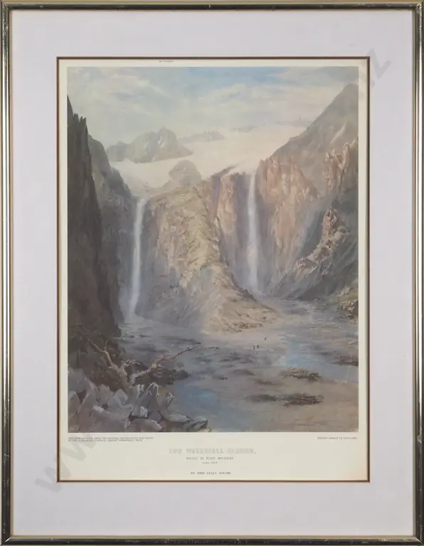 John Gully. Two Waterfall Glacier. Reproduction Print from Original Watercolour.