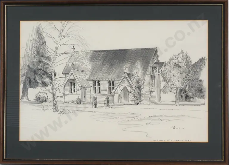 Rodney Wells. 1986. All Saints Anglican Church, Methven. Pencil.
