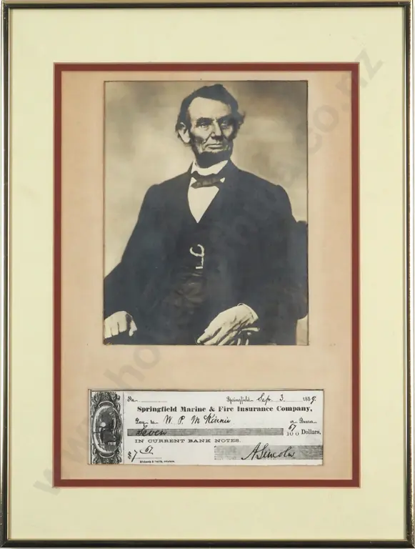 Photo of Abraham Lincoln w Reproduction Check (U.S. English).