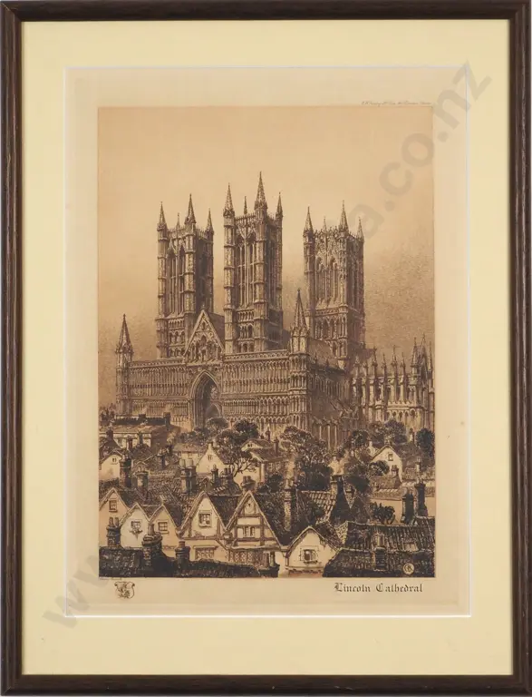 Charles Bird. "Lincoln Cathedral'. Etching.