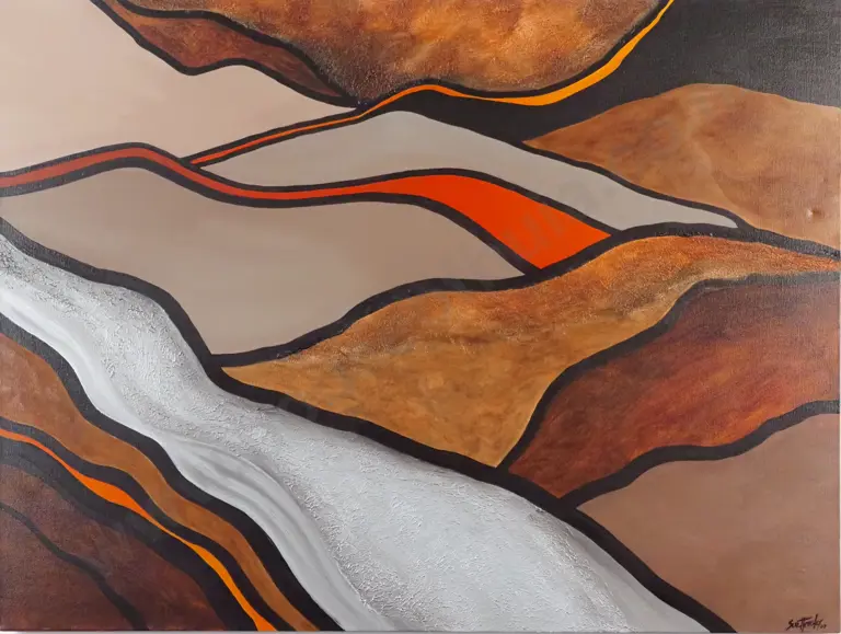 Sue Helmsley. 2007. Abstract - River & Mountain Scene. Textured Oil on Canvas.