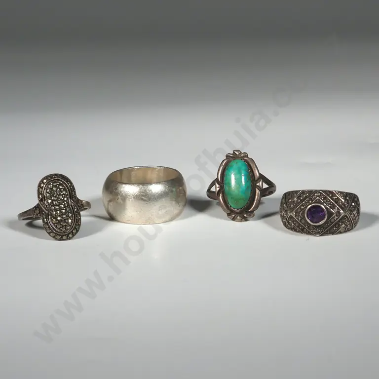 Four Sterling Silver Rings. Including A Marcasite Ring Set With An Amethyst Estimate: $50 - $100
