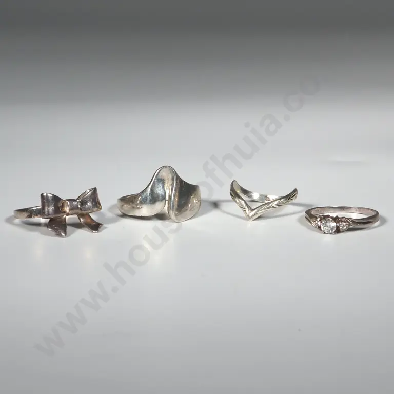 Four Sterling Silver Rings. One with A Bow Estimate: $40 - $80