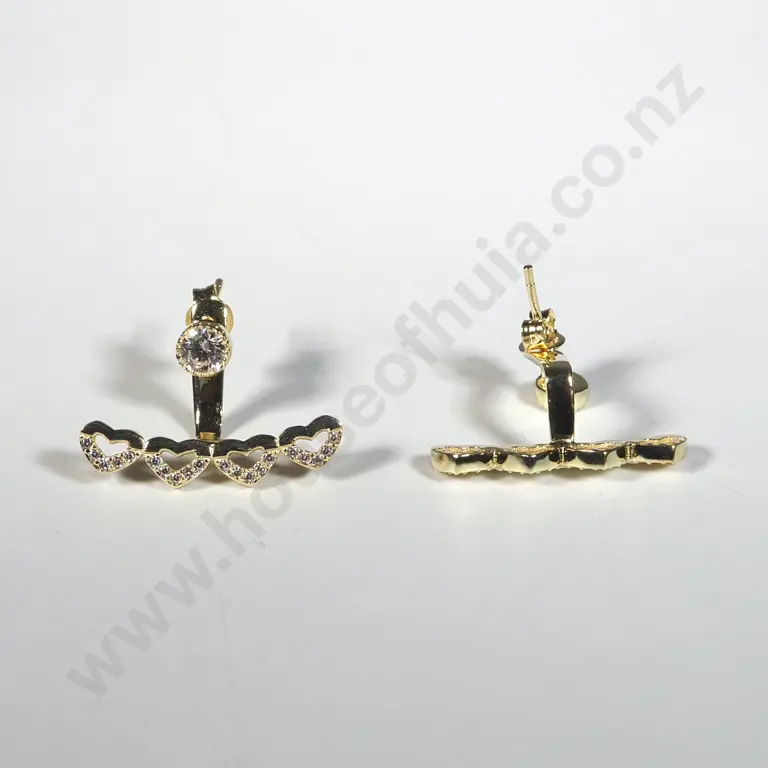 Pair of Gold Tone Sterling Silver Cuff Earrings Set With White Stones