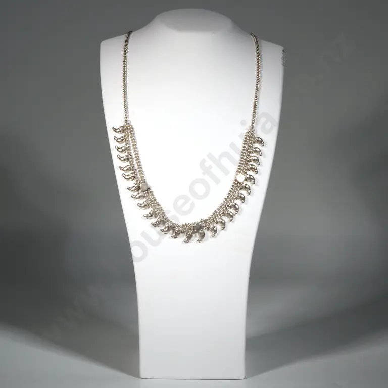 Sterling Silver Enamel & White Stone Leaf Shaped Pendant on Chain