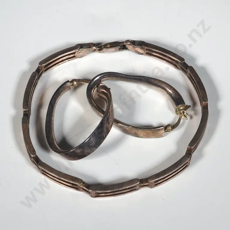 Sterling Silver & Twist Hoop Earrings & Gate Link Bracelet