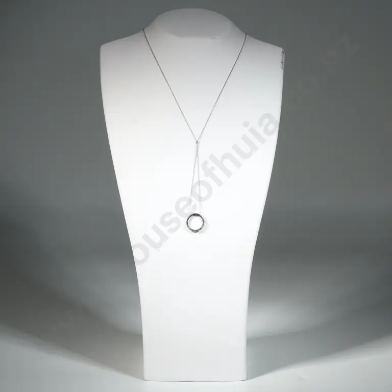 Sterling Silver White & Blue Sapphire Circular Pendant On Chain