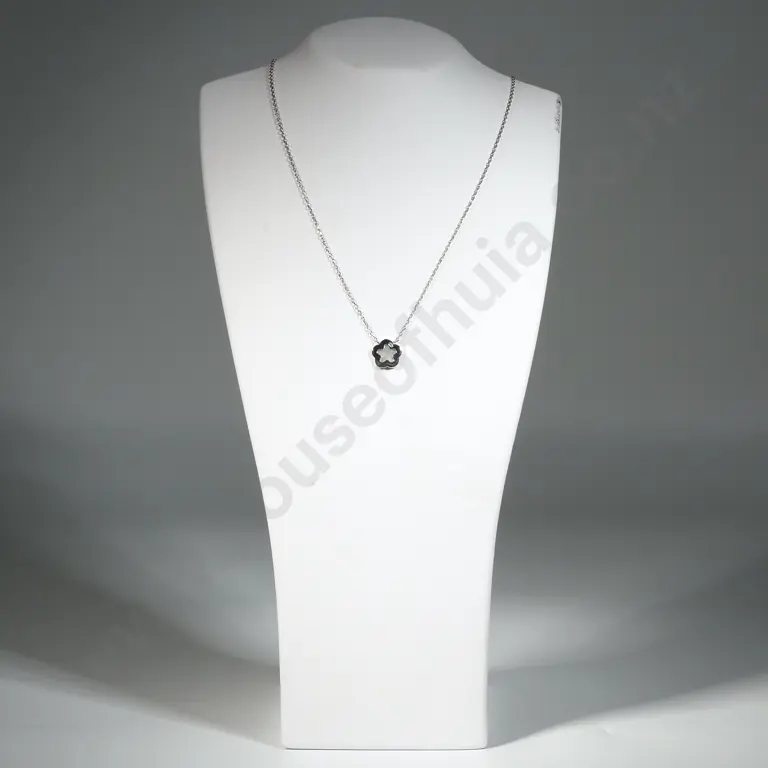 Sterling Silver & Mother Of Pearl Five Petal Flower Pendant Necklace In The Style Of Van Cleef & Arpels