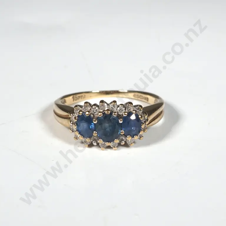 9ct Gold Sapphire & Diamond Ring w English Hallmarks