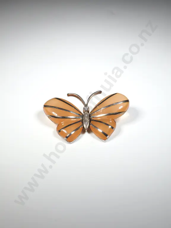 Sterling Silver Rose Gold Bracelet Featuring A Mother Of Pearl & White Stone Butterfly Motif