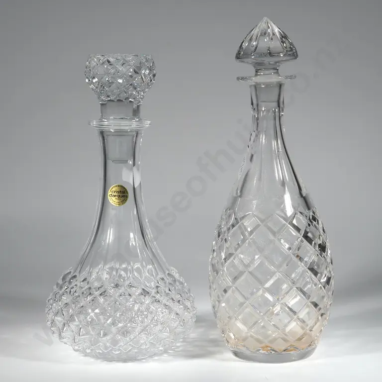 Two Vintage Leather Covered Decanters.