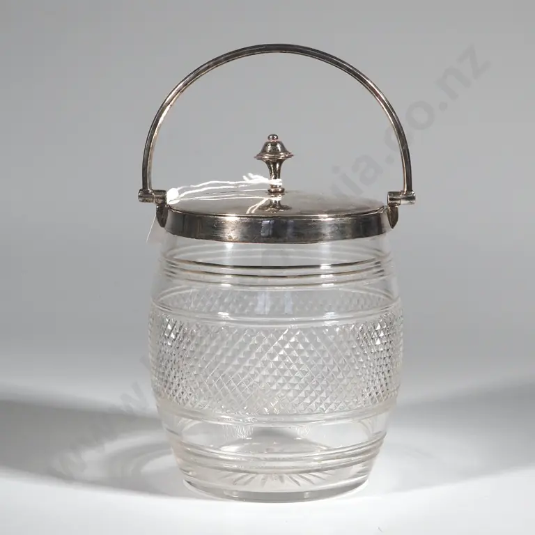 Blue/Grey Enamel Jar w Handle & Lid.