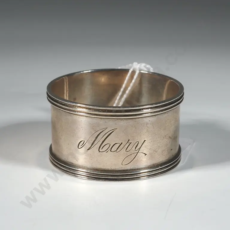 Sterling Silver Engine Turned Serviette Ring w Empty Cartouche.