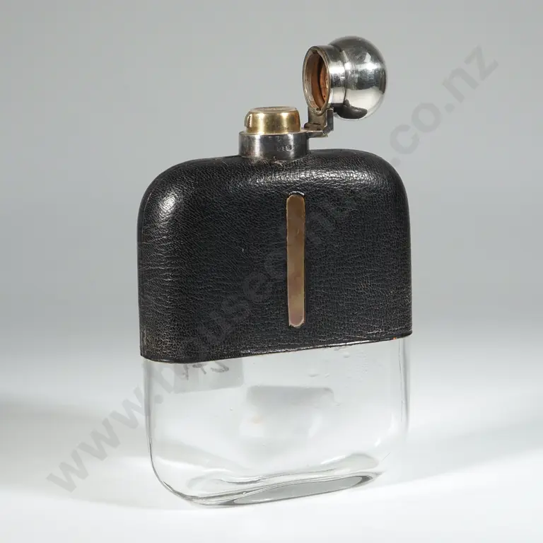 Vintage Spirit Flask w Leather Covering, & a Vintage Ballantynes Box.